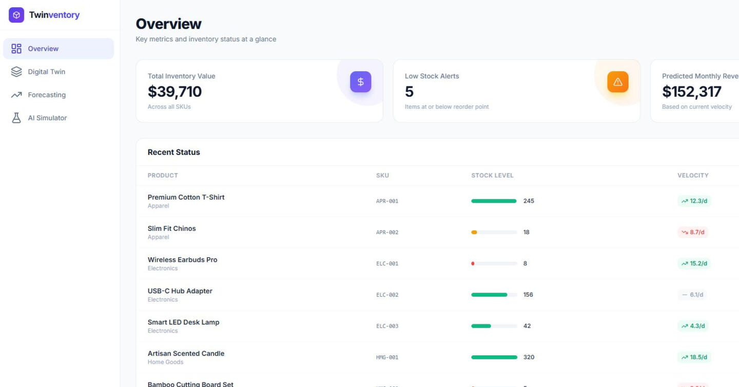 Twinventory | Supply chain Intelligence: Bridging physical stock and digital commerce with AI-powered "Digital Twin" simulations.